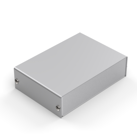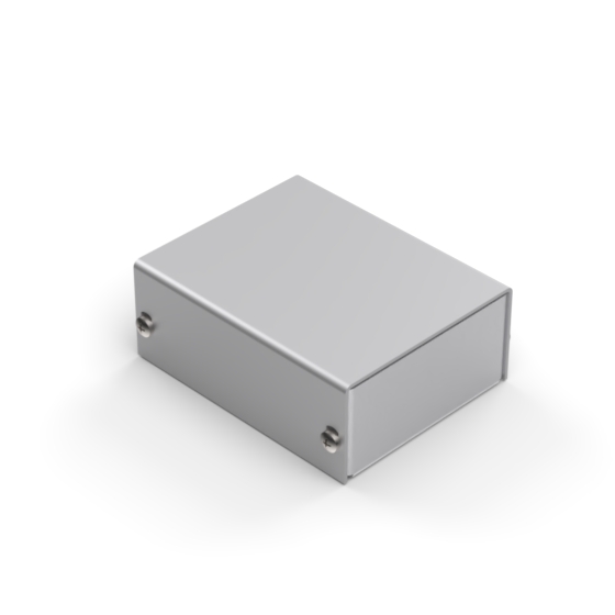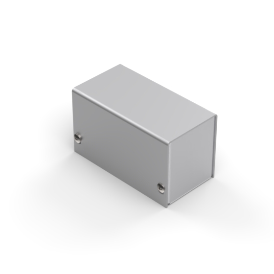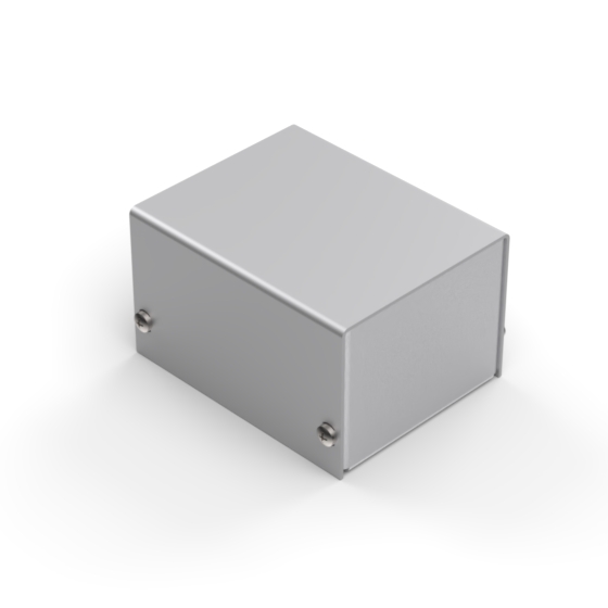 Contenitori composti da fondo e coperchio in alluminio metallizzato di colore argento. Assemblaggio facile e veloce con chiusura a quattro viti.