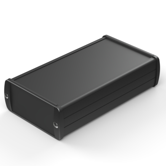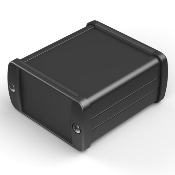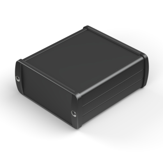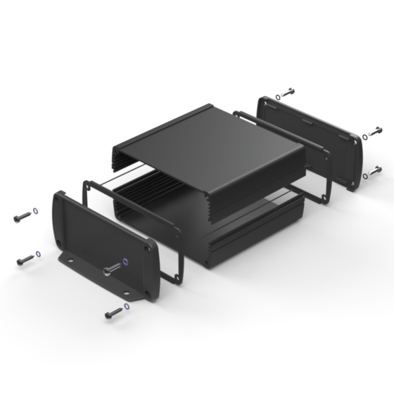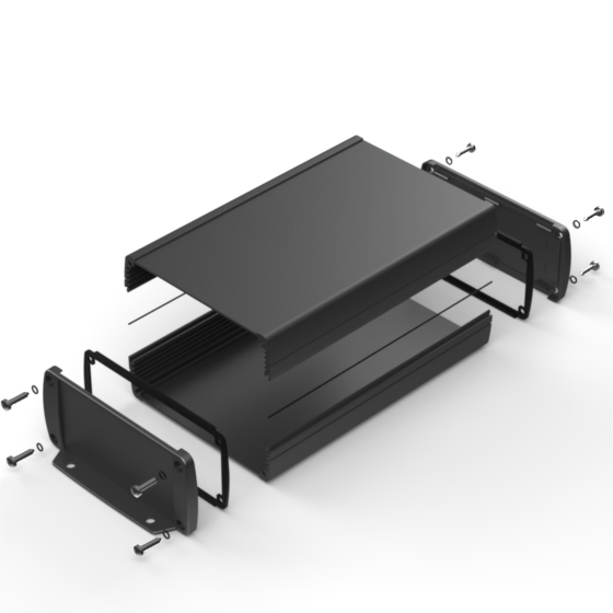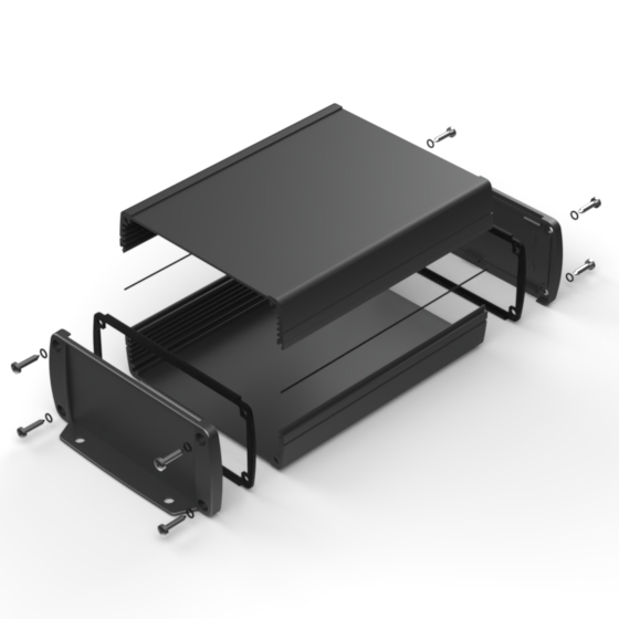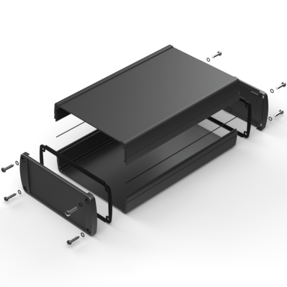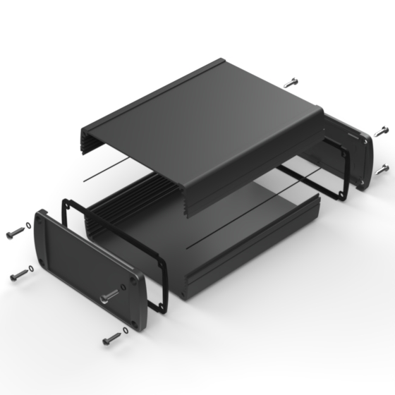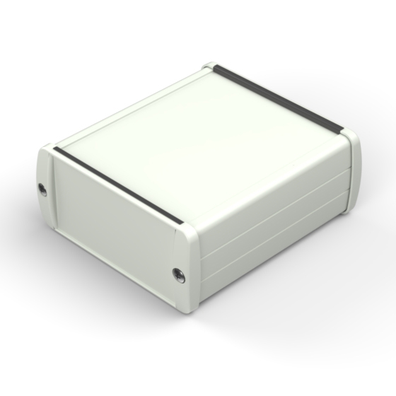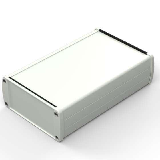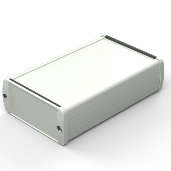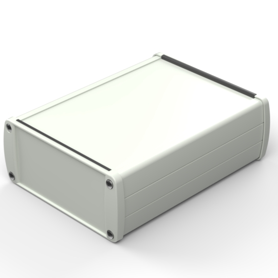 Contenitore in alluminio estruso con verniciatura esterna a polvere di elevato standard qualitativo. Due pannelli frontali in metallo, guarnizioni in gomma per protezione da acqua e polvere (IP65) disponibile in sei colori diversi, guide interne per PCB e parte superiore con area ribassata per l’alloggiamento di una tastiera a membrana. I modelli con “-E” sono dotati di pannelli in metallo flangiati per montaggio a parete. Chiusura a quattro od otto viti.