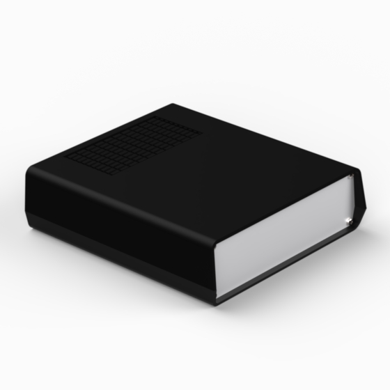 Contenitori in ABS con superfici opache e dotati di due pannelli frontali in alluminio di spessore 1 mm. I gusci superiori ed inferiori sono dotati di una foratura per aerazione e sono dotati di punti di fissaggio per PCB. Chiusura a otto viti.