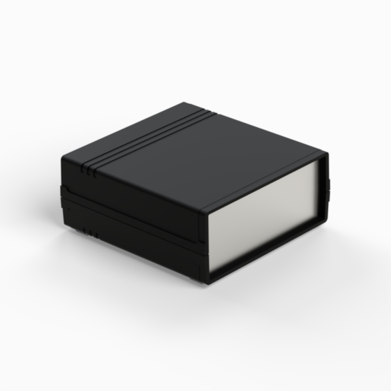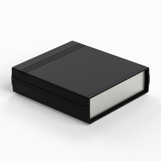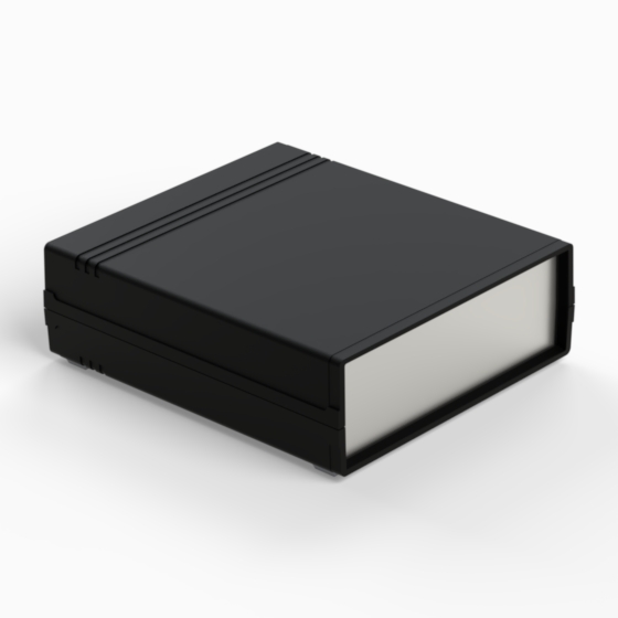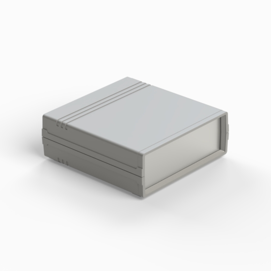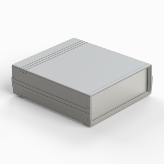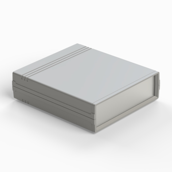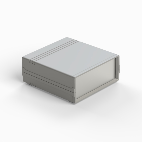 Contenitore in ABS con superfici opache e pannelli in alluminio di spessore 1 mm. All’interno sono presenti guide e punti di fissaggio per PCB. Chiusura con due viti. Il contenitore può essere dotato di pannelli in ABS di colore grigio chiaro (codice colore .13). Versione pannello in plastica: 011P, 012P, 022P, 222P, 223P, 233P.