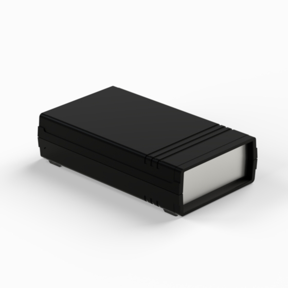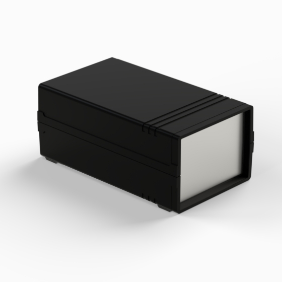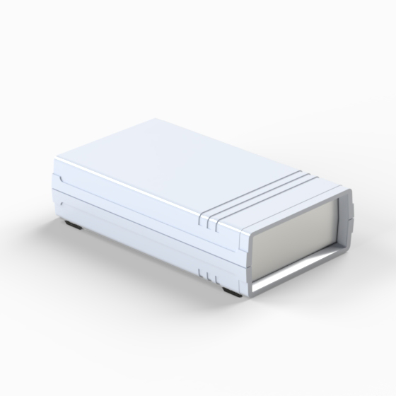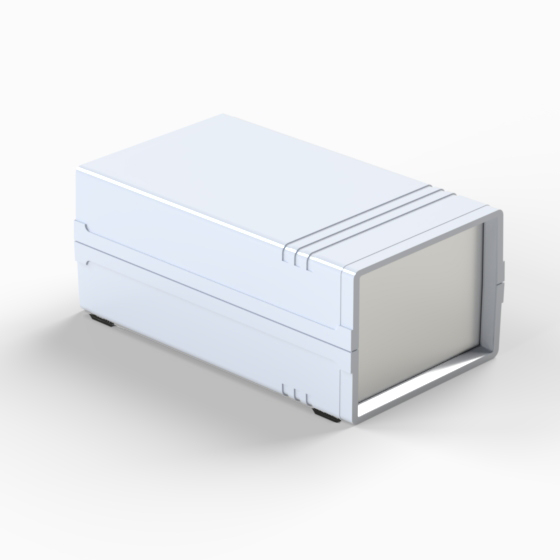 Contenitore in ABS con superfici opache e pannelli in alluminio di spessore 1 mm. All’interno sono presenti guide e punti di fissaggio per PCB. Chiusura con due viti. Il contenitore può essere dotato di pannelli in plastica (Mod. PPD1, PPD2 e PPD3).