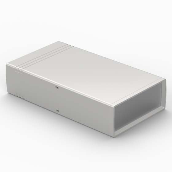 Contenitori in ABS con pannelli frontali in alluminio di spessore 1 mm. All’interno di entrambi i semigusci sono presenti punti di fissaggio per PCB (Eurocard 100 x 160 mm.). Superfici opache. Montaggio rapido ad incastro, senza viti.