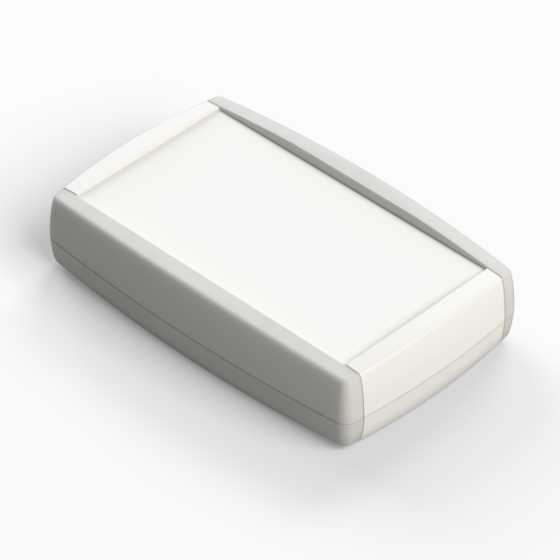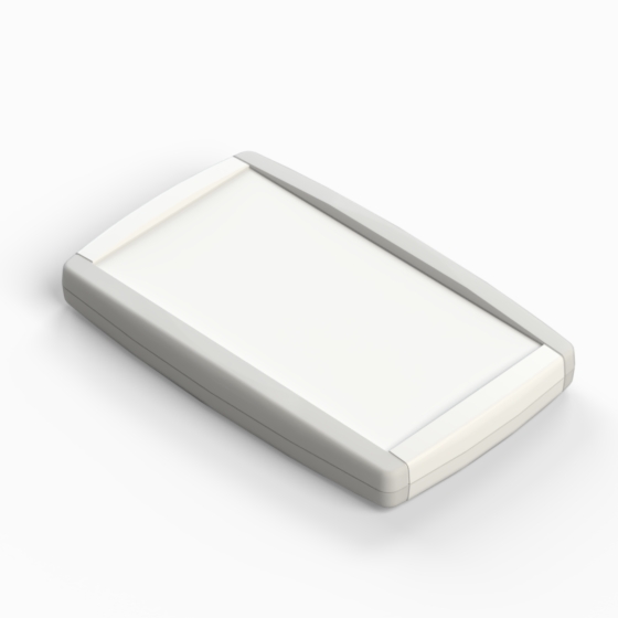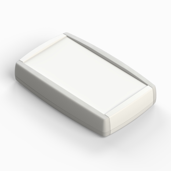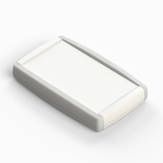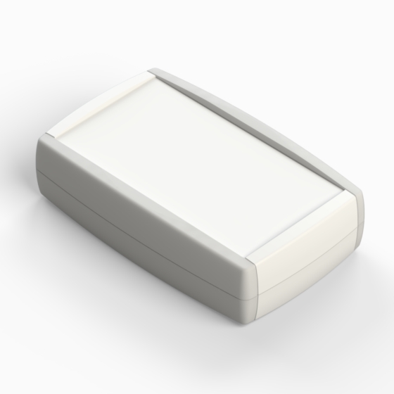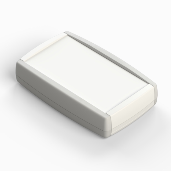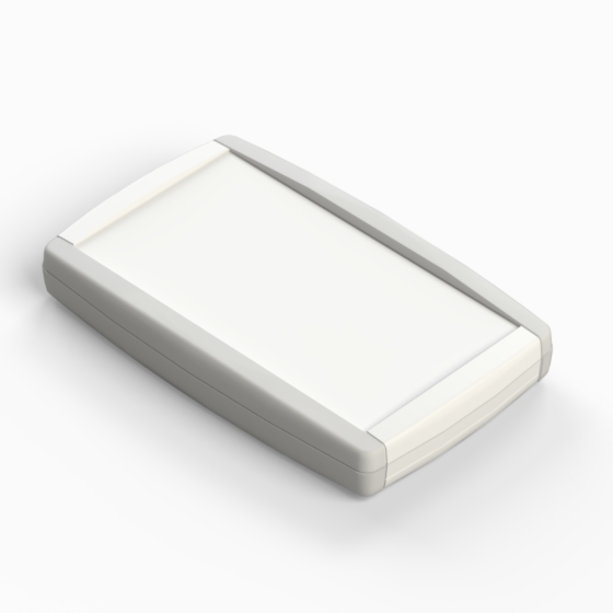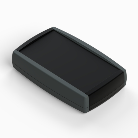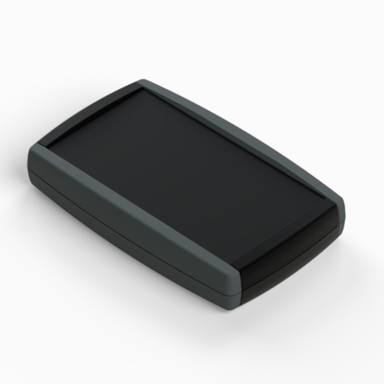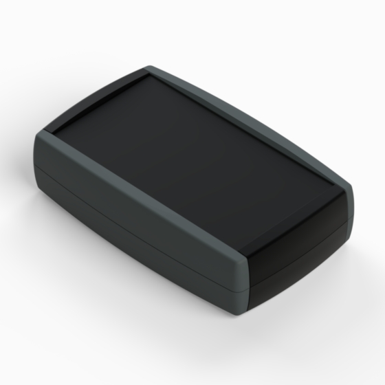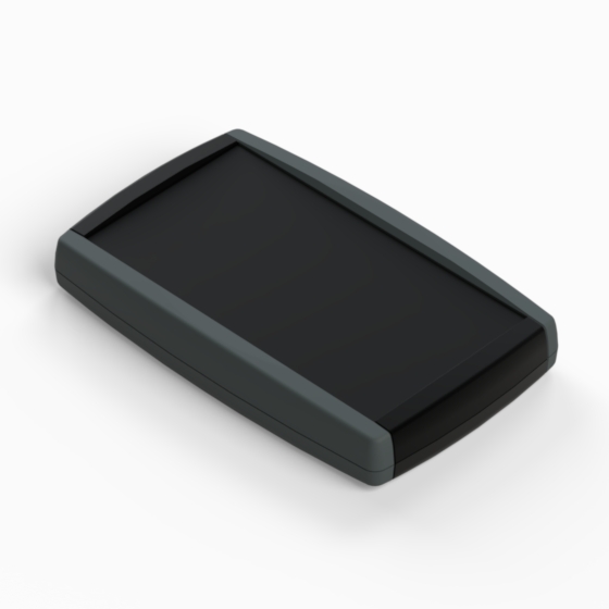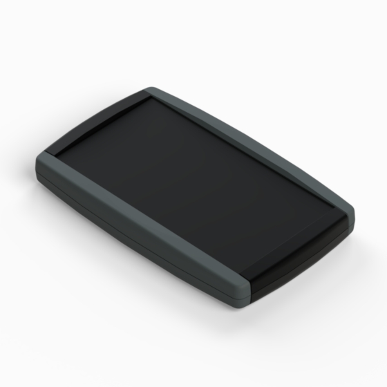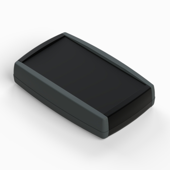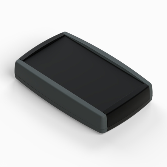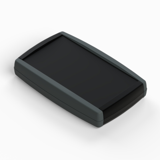 Contenitore palmare in ABS con ai lati profili in poliuretano (TPU). Superfici opache con area superiore ribassata per alloggiamento tastiera a membrana o pannello in alluminio. I modelli contrassegnati da “-B” sono dotati di alloggiamento per batteria da 9V o due batterie stilo da 1,5V. I modelli con “-B2” dispongono di un vano portabatteria per quattro pile stilo da 1,5 V (AA) oppure due batterie da 9V (PP3). Chiusura a quattro viti. Disponibile su richiesta pannello in alluminio (Mod. APTB) e tastiera a membrana standard “M” o “MW” (con finestra per display).
